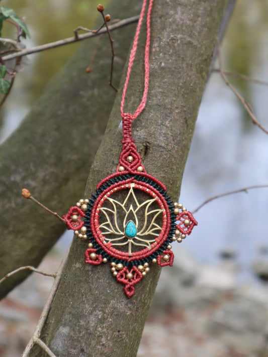 Lotos Mandala Kette mit Türkis,