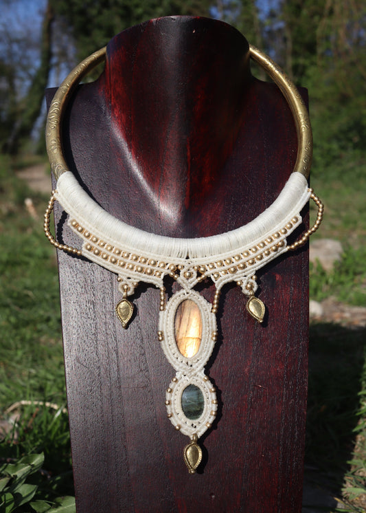 Beiges Makramee Collier mit Labradorit