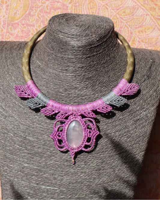 Lila Messing Halsreifen mit Rosenquarz