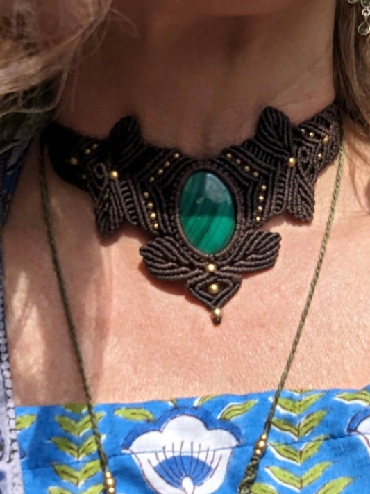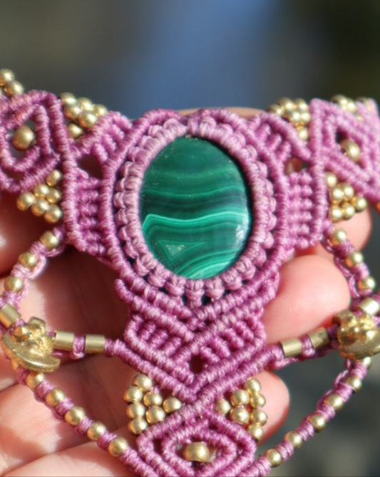 Makramee Collier mit Malachit