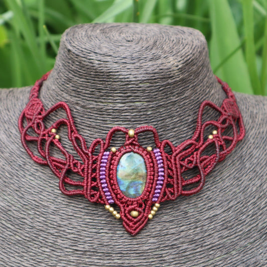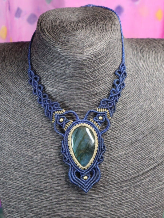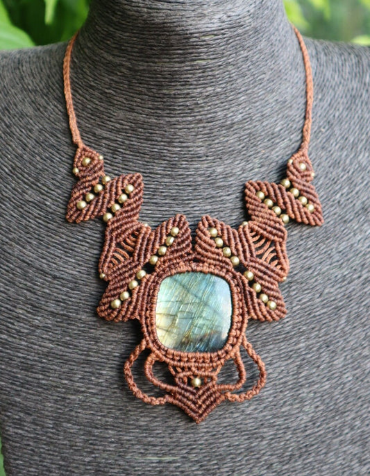 Makramee Collier mit Labradorit,