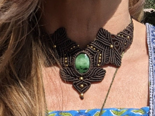 Makramee Collier mit Rubinzoisit