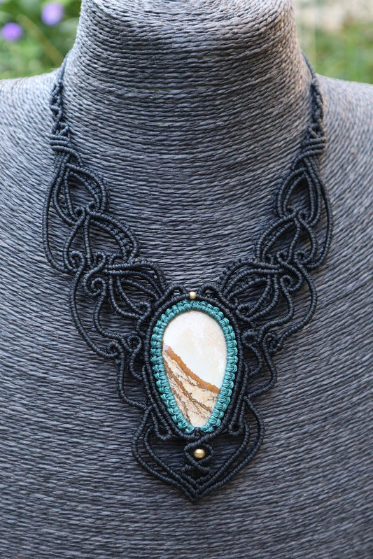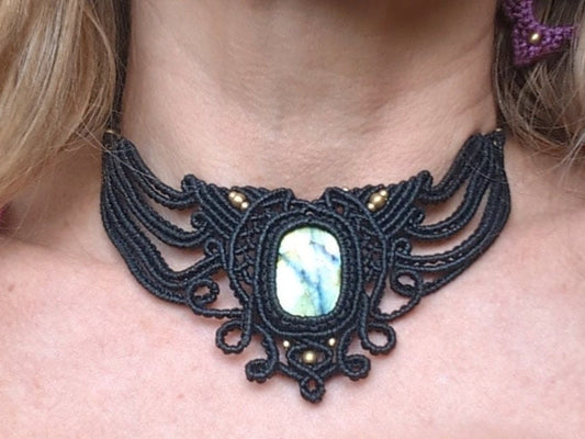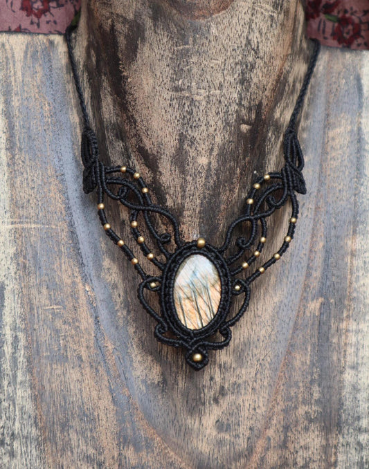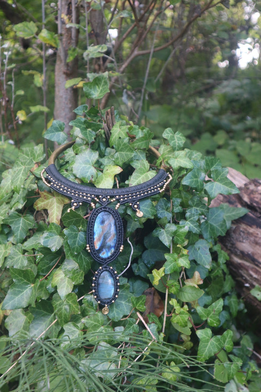 Schwarzer Messing Halsreifen mit zwei Labradoriten