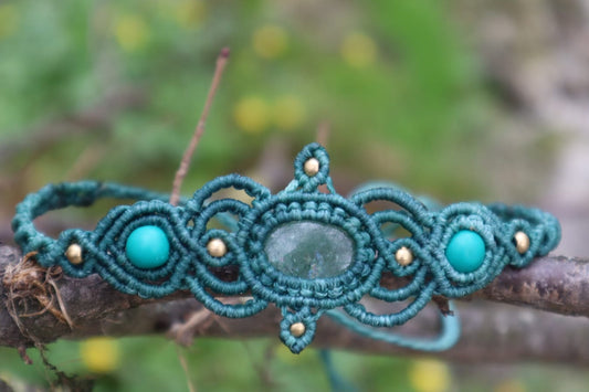Türkisgrüne Tiara mit Erdbeerquarz und Türkisperlen