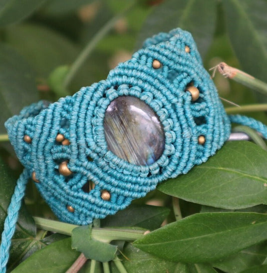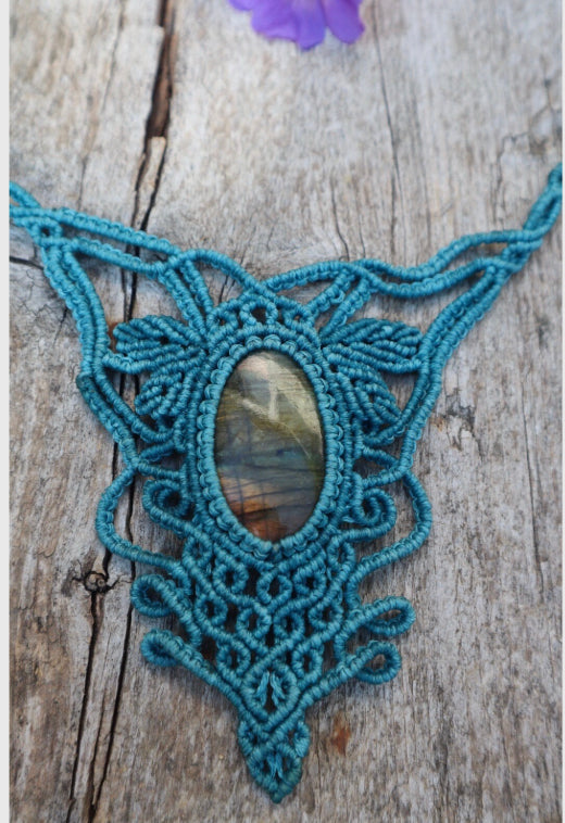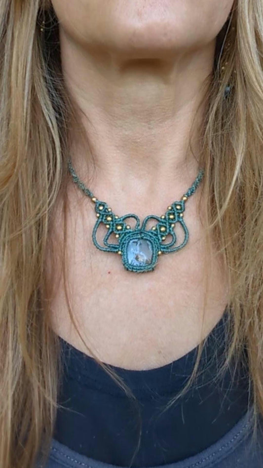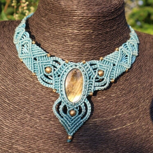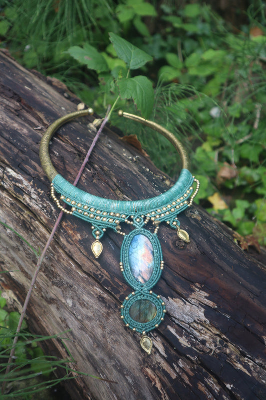 Messing Halsreifen mit zwei Labradoriten, Elfencollier