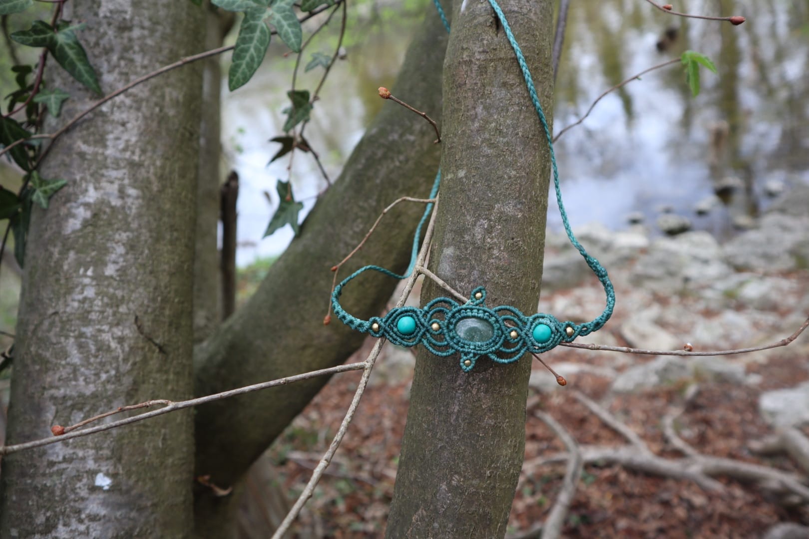 Seine Wirkung erzielt der Stein durch Berührung, aber auch durch meditatives Betrachten. Er wird von der Macrameknüpfung nur eingefasst und nicht verklebt.