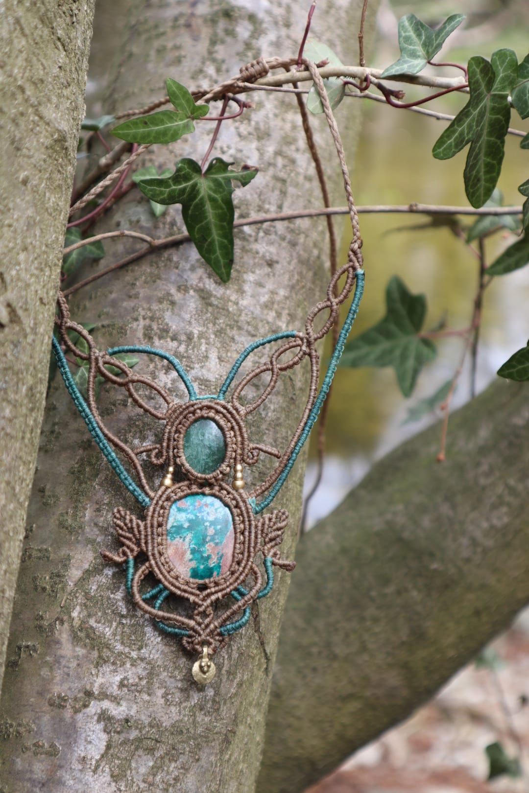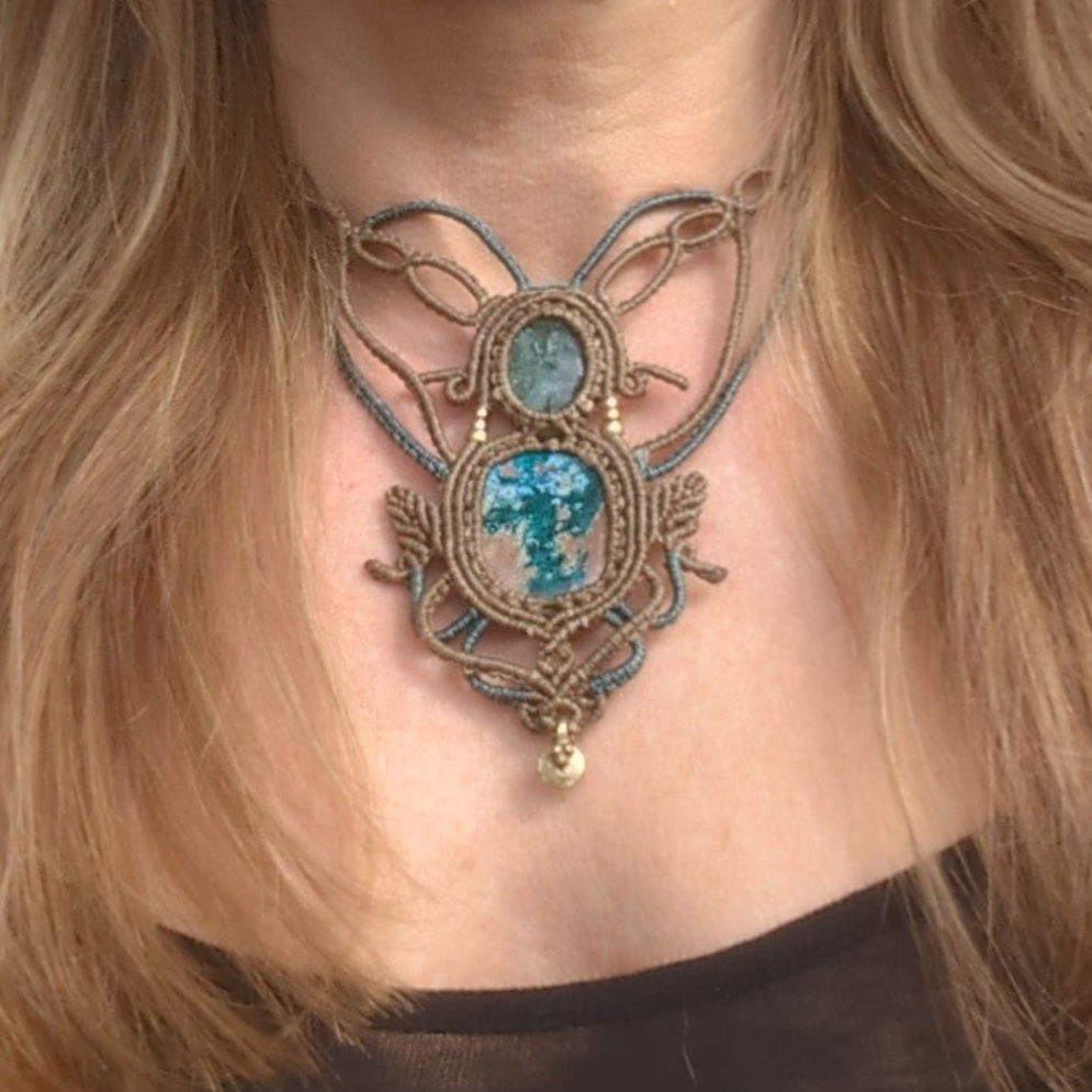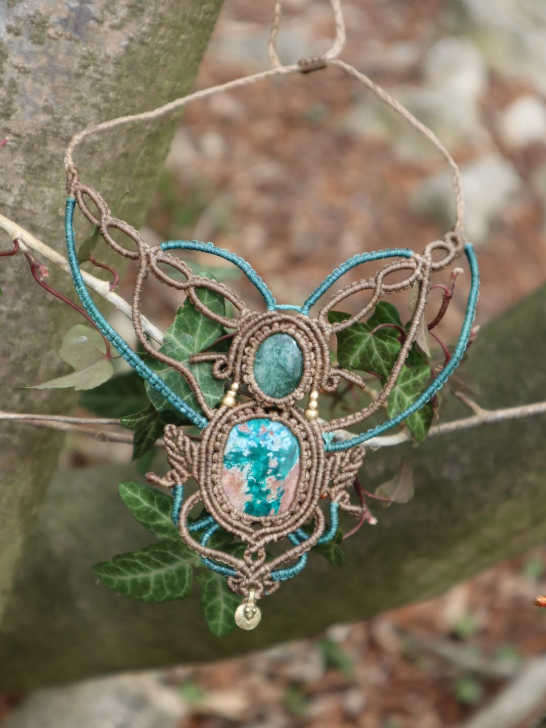 Elfencollier mit Chrysokoll und Erdbeerquarz