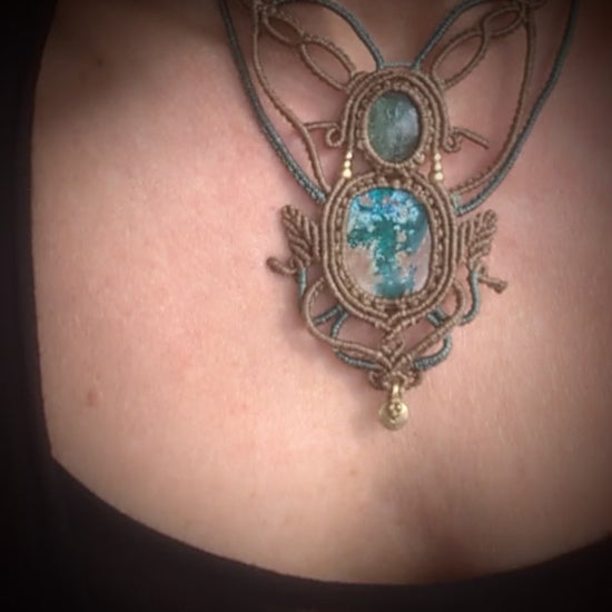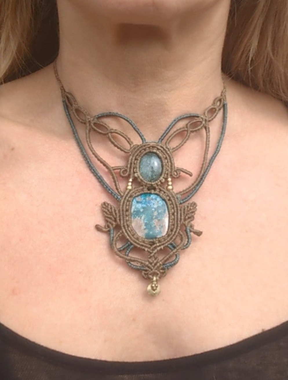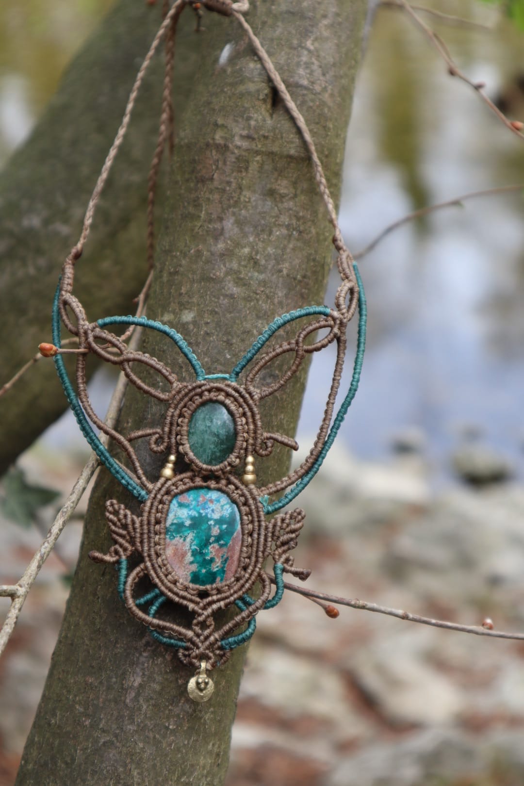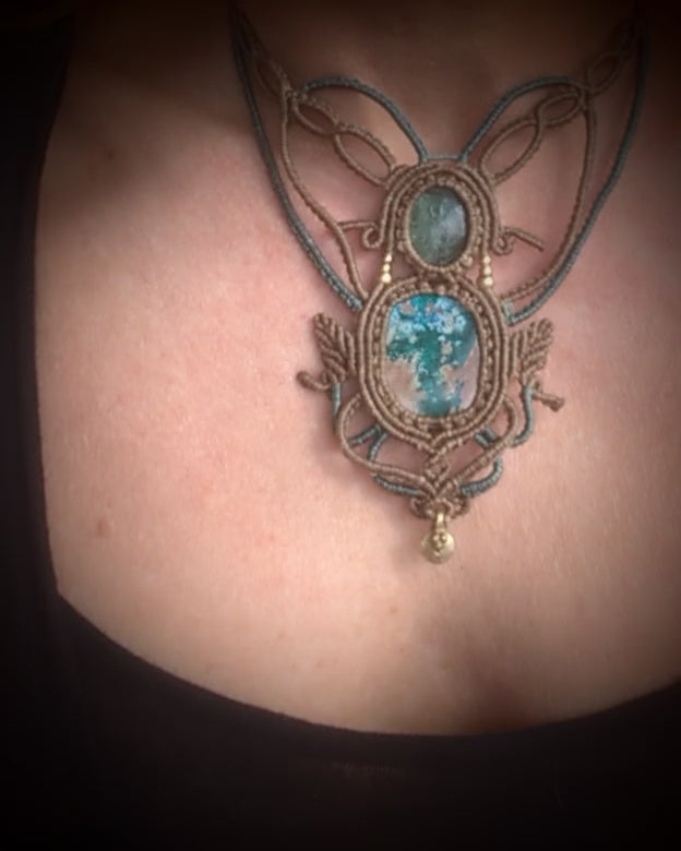 Elfencollier mit Chrysokoll und Erdbeerquarz