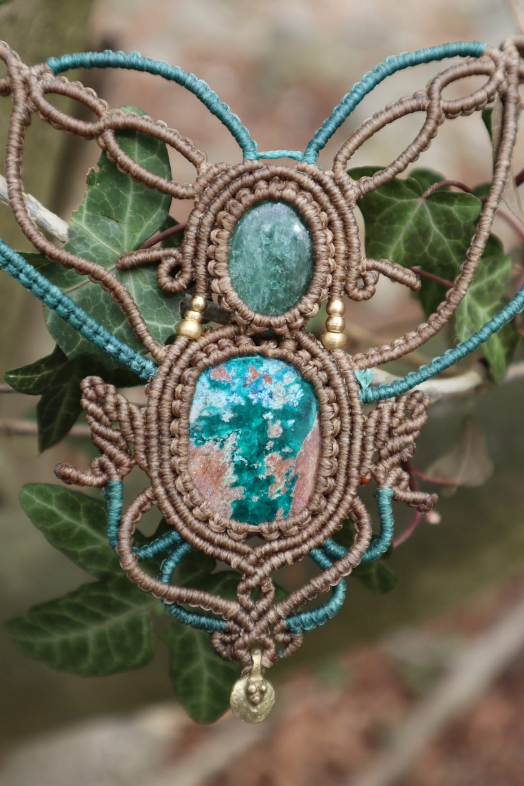 Seine Wirkung erzielt der Stein durch Berührung, aber auch durch meditatives Betrachten. Er wird von der Macrameknüpfung nur eingefasst und nicht verklebt.