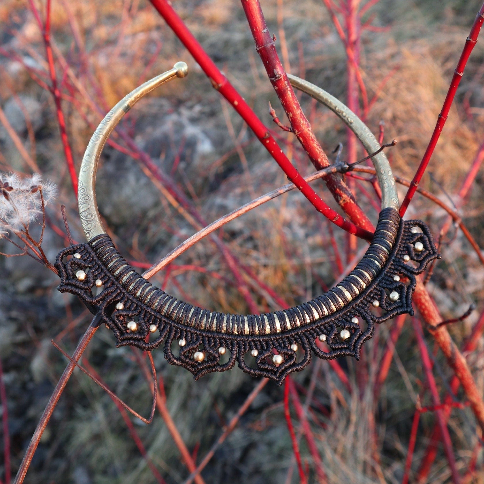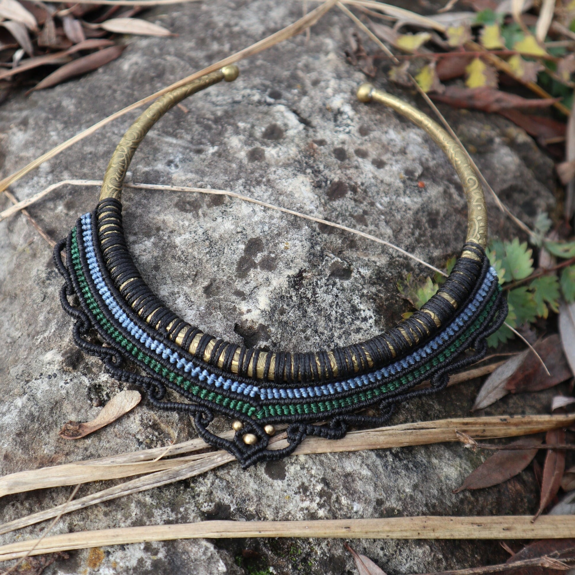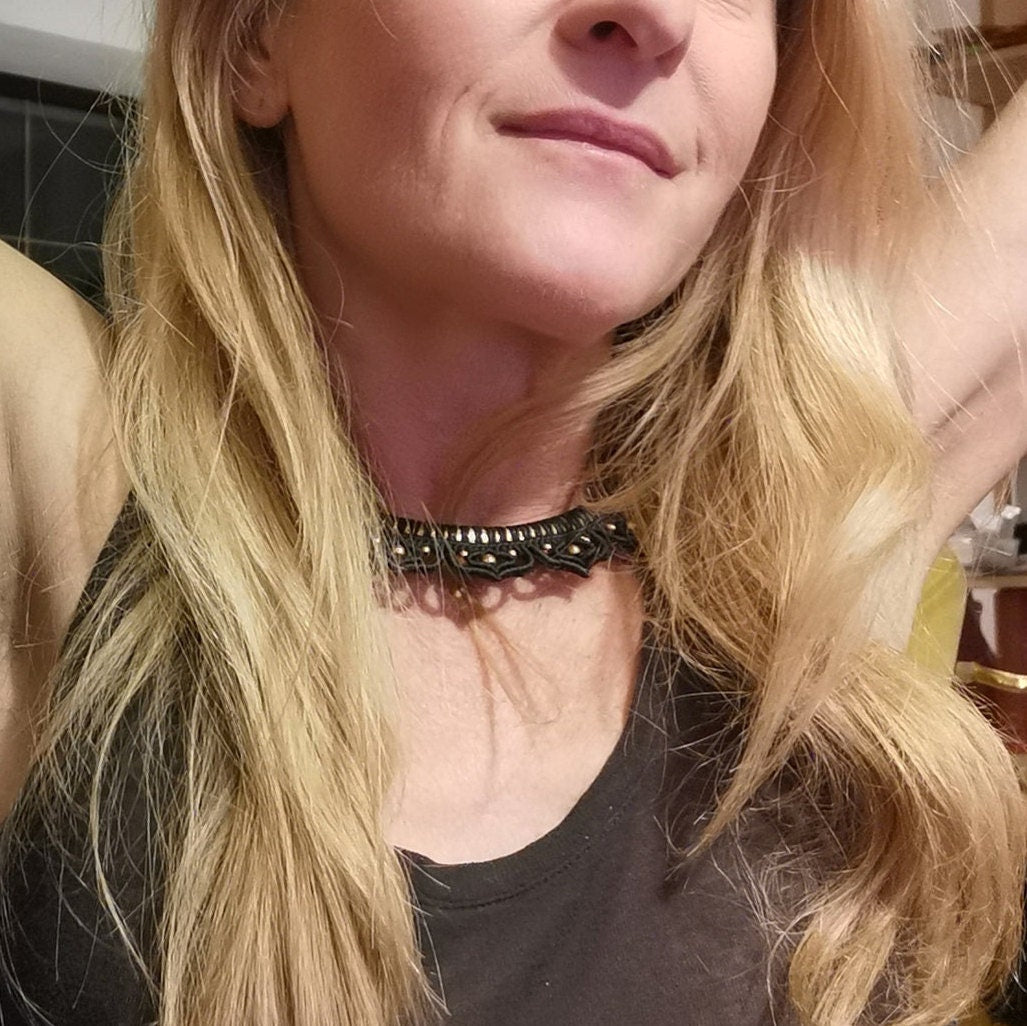 Makramee Chokerkette, Brass Choker, Tribal, Halsreif, Ethno Schmuck
