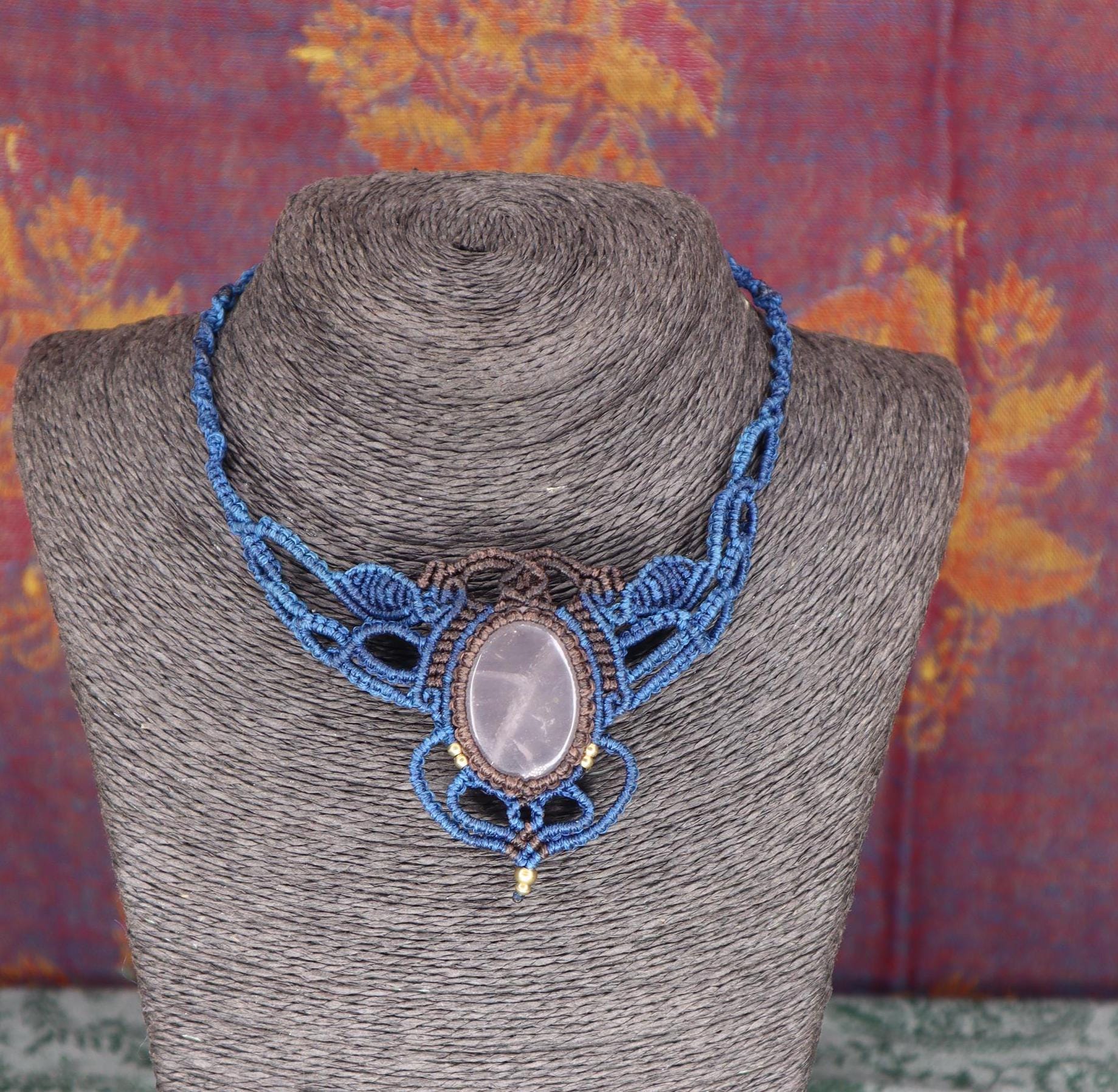 Seine Wirkung erzielt der Stein durch Berührung, aber auch durch meditatives Betrachten. Er wird von der Macrameknüpfung nur eingefasst und nicht verklebt, sodass er direkt mit dem Körper in Kontakt ist. Hier ist es ein sehr schöner Aventurin, ein Stein mit großem Entspannungsfaktor. Er misst etwas 3,8 mal 3 cm.
