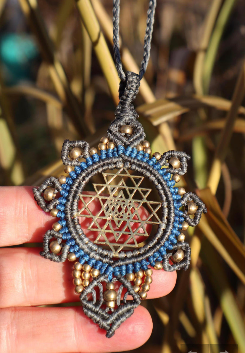 Eine Macrameemandalakette ist ein Meditationsbild am Körper.