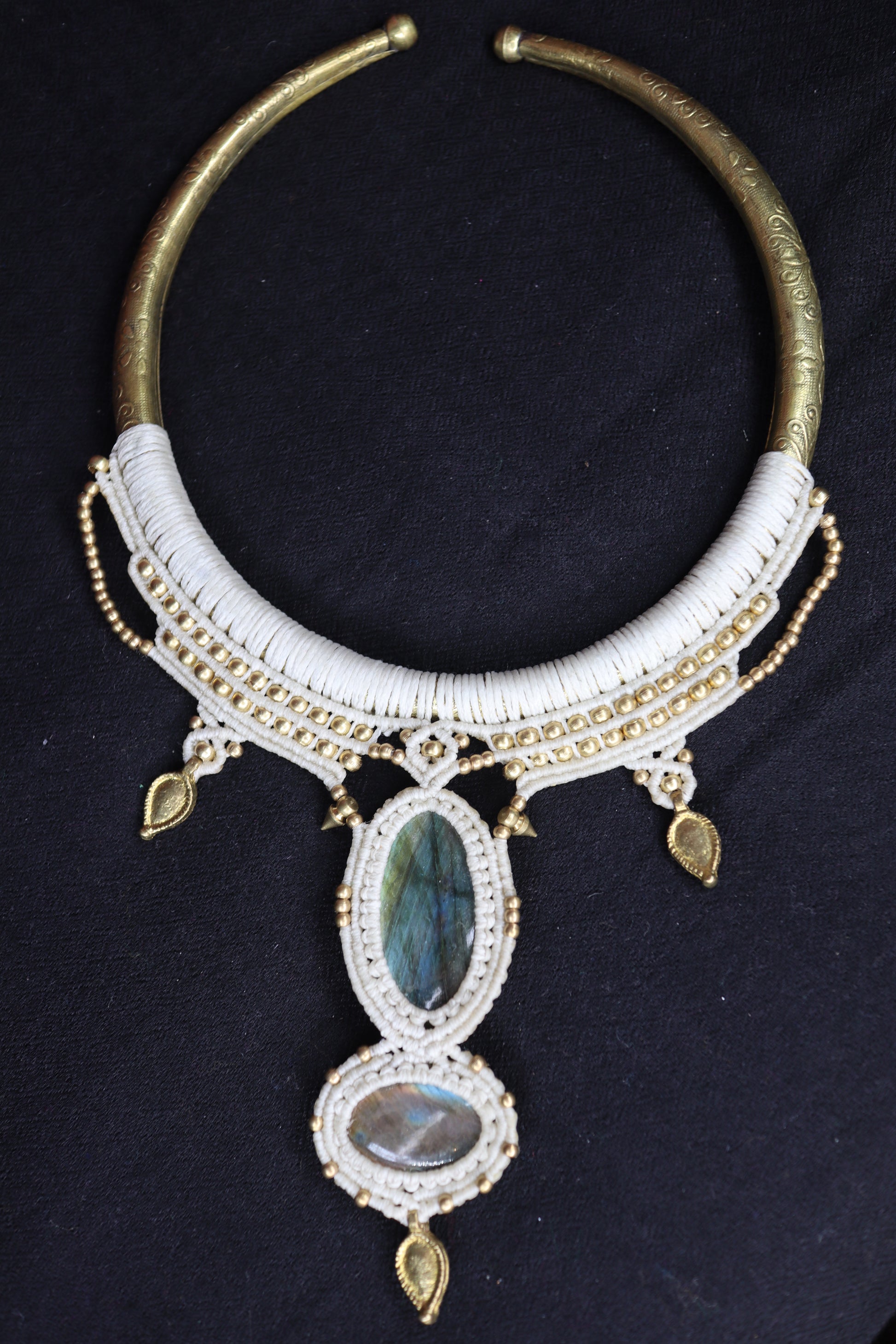 Messing Halsreifen mit zwei Labradoriten, Elfencollier