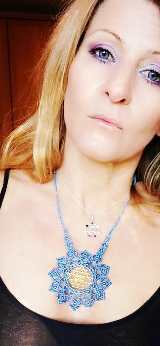 Das Shri Yantra gilt als das heiligste und bedeutendste Yantra. Ein Yantra ist ein geometrisches Diagramm von starker Wirkkraft. Yantra meint auch etwas, das etwas bewegt und etwas bewirkt. Dieses Schmuckstück hat positive, energiebringende Ausstrahlung auf die ganze Umgebung und unterstützt die Individualität der Trägerin.