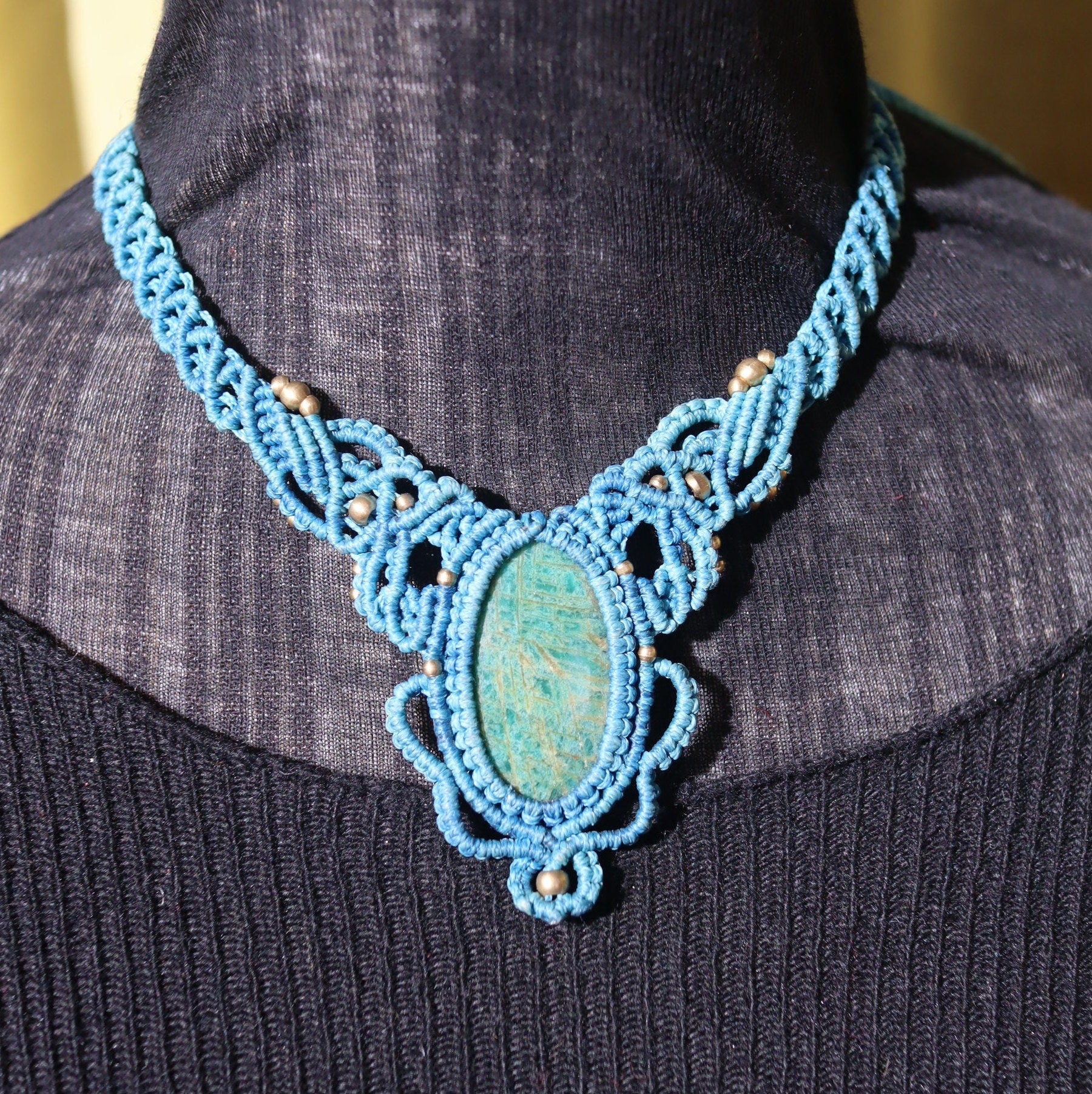 Türkisblaues Macramee Collier mit Amazonit
